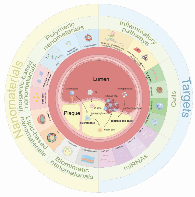该研究综述对动脉粥样硬化的病理机制,纳米颗粒介导的治疗策略,以及未来纳米递送的潜在治疗靶点进行了系统总结。揭示了纳米颗粒用于动脉粥样硬化治疗的潜力和挑战,并强调了新的有效的设计思路。
