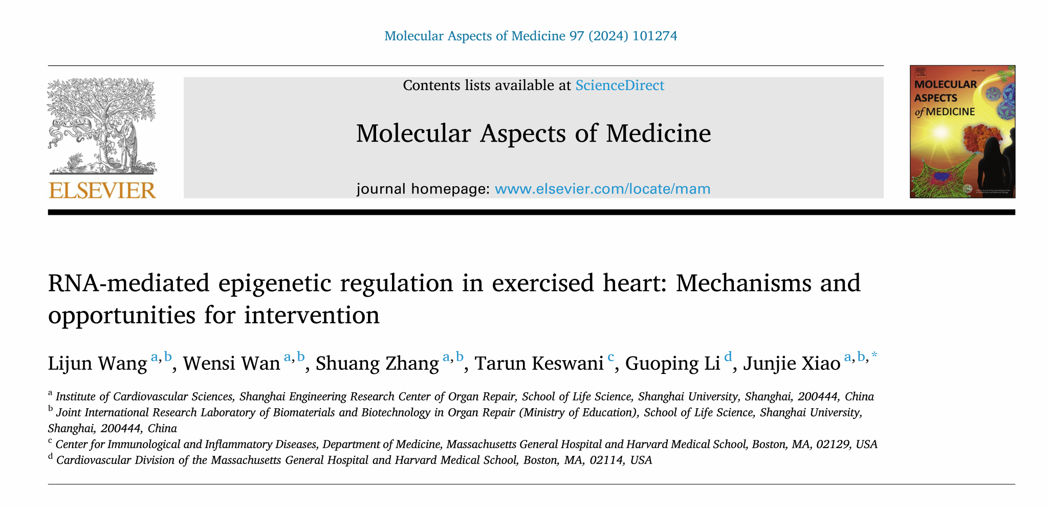 近日,生命科学学院心血管研究所王丽君副教授发表运动锻炼促进心脏健康的RNA表观遗传分子机制及治疗应用的综述论文。论文以“RNA-mediated epigenetic regulation in exercised heart: Mechanisms andopportunities for intervention”为题发表在医学-生化与分子生物学领域著名国际期刊Molecular Aspects of Medicine(https://www.sciencedirect.com/science/article/pii/S0098299724000335)上(JCR分区Q1,杂志影响因子:10.6)。肖俊杰教授为通讯作者,国产亚洲精品美女久久久为论文的第一完成单位。