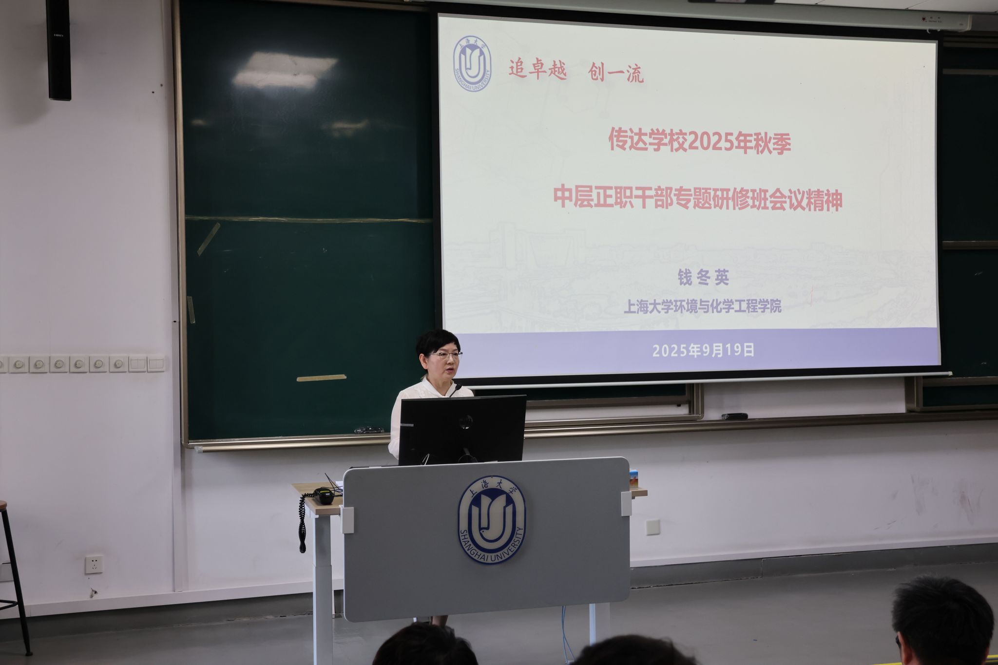 会上,环化学院党委书记钱冬英传达了学校2025年秋季中层正职干部专题研修班会议精神,对学院党委下半年重点工作作出系统部署。她详细介绍了学校深化综合改革的主要内容和具体举措,并强调要深刻认识推进高等教育综合改革的必然性和紧迫性,切实增强全院上下投身改革的责任感与主动性;要增强战略敏捷性,始终聚焦立德树人根本任务,使国家战略与社会需求真正成为育人工作的坐标指引;要加强干部作风建设,进一步提振干事创业的精气神,营造务实担当、奋发有为的良好政治生态。钱冬英指出,全体教师要主动服务学校深化综合改革大局,将个人发展与学院、学校事业紧密结合,以高度的责任感与使命感深耕教学科研岗位,在提升育人质量、攻克“卡脖子”技术瓶颈上主动作为,为学院高质量发展与学校“双一流”建设筑牢根基。